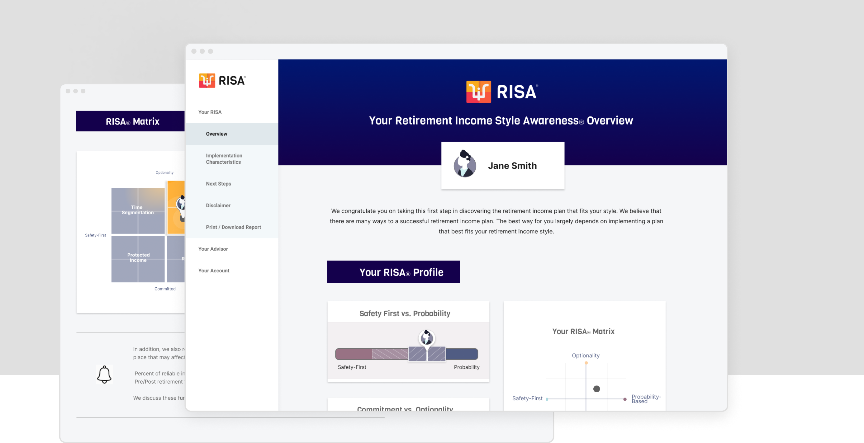 The RISA® helps you transition to retirement with an easy-to- use framework and an emphasis on the income sourcing strategies that are most comfortable, so you have that ever elusive starting point.